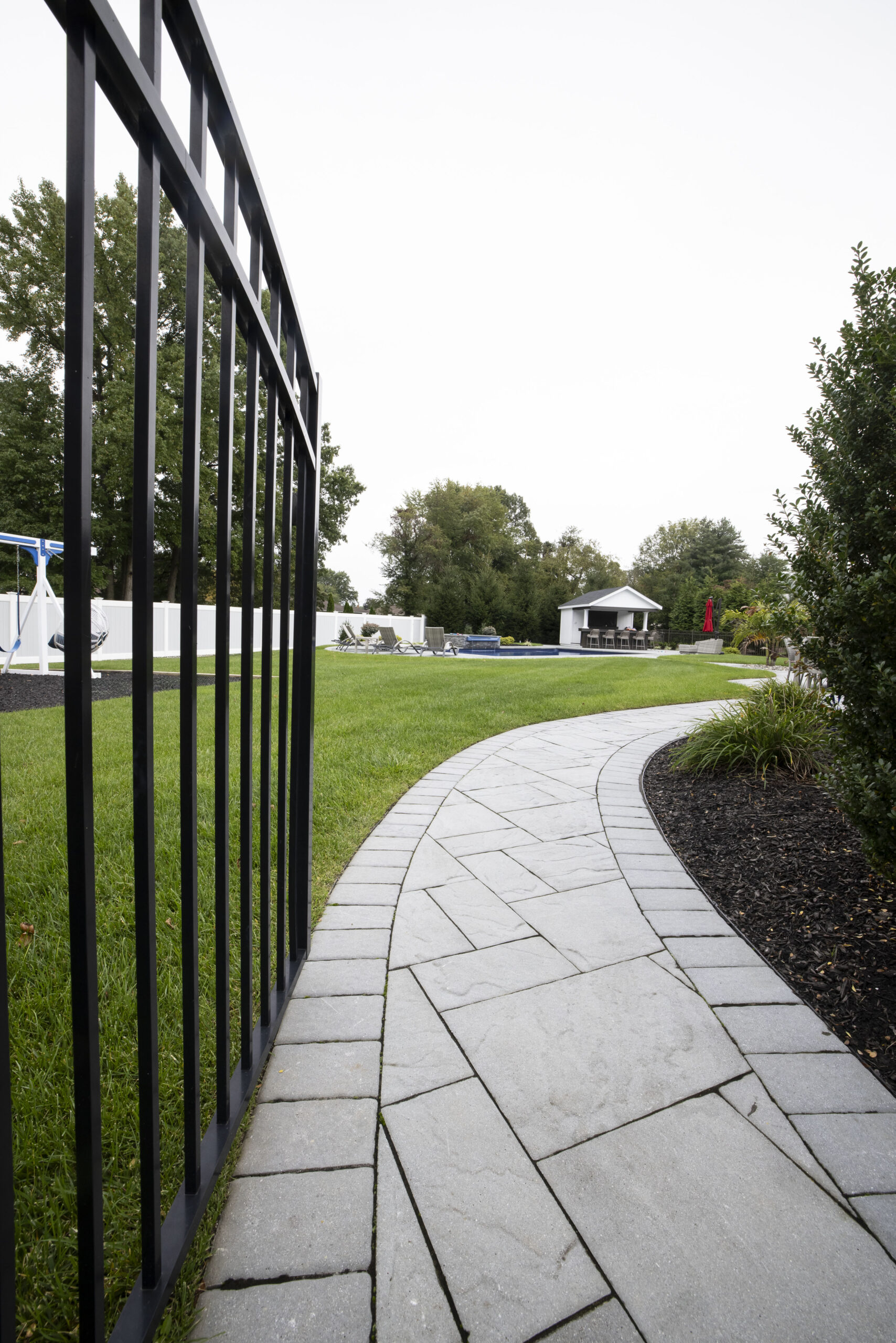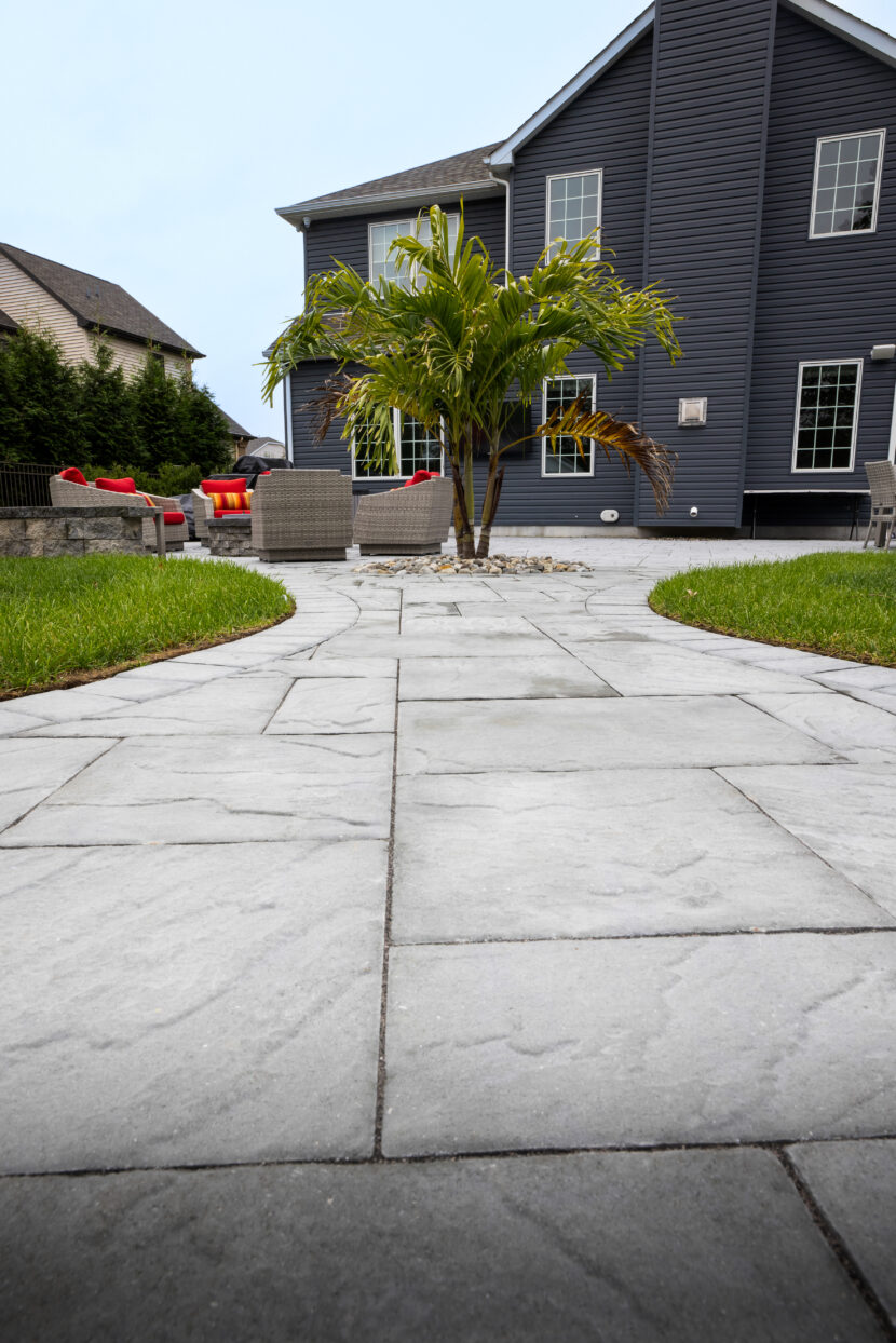 Cambridge Paver Stones were used for the patio, walkways, and pool area. These pavers ensure that the homeowners can enjoy this elegant yet durable space for years to come. The natural tones of the pavers compliment the outdoor landscaping, creating an aesthetically pleasing environment.